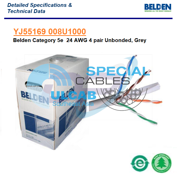 Cáp mạng Belden Cat5e UTP 4 Pair 24 AWG | PN: YJ55169 008U1000 chính hãng