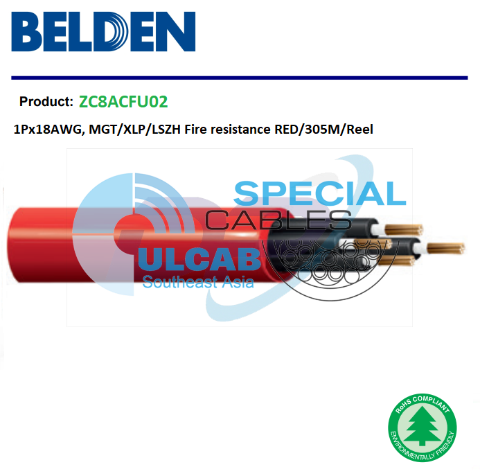 Cáp Chống cháy BELDEN ( ZC8ACFU02 ) 1 x 2 x 18AWG MGT/XLP/LSZH Fire resistance | Chính Hãng – Chống Cháy – Giá Tốt Nhất