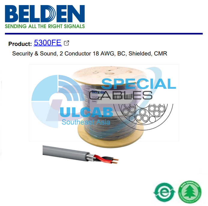 Thông số cáp Cáp tín hiệu 2 lõi, 18AWG, chống nhiễu (5300 FE)