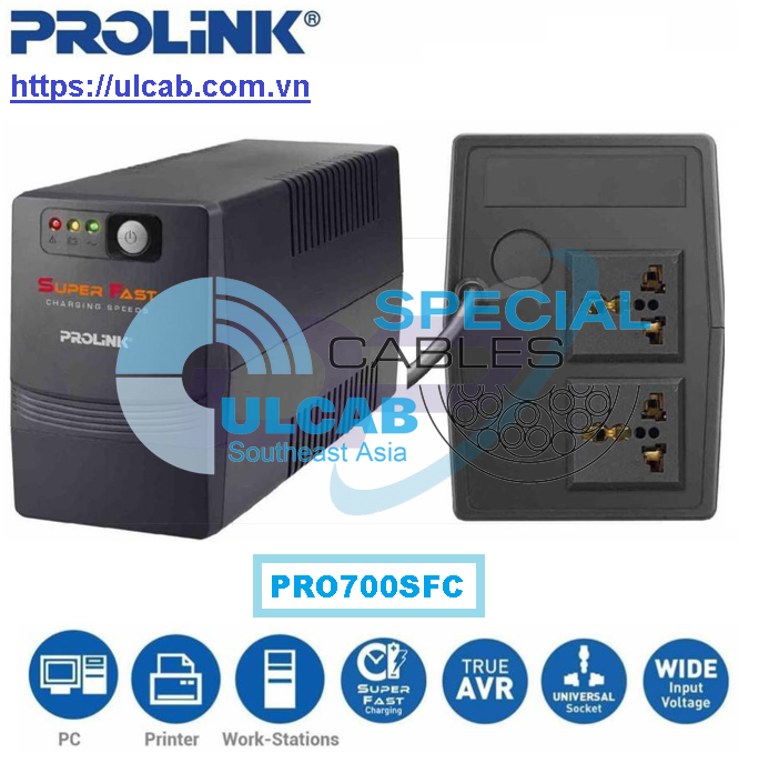 Dòng sản phẩm PROLINK SFC là hệ thống UPS Line Interactive vào 1 pha/ra 1 pha sử dụng Công nghệ nạp sạc siêu nhanh. Công nghệ có lợi thế vượt trội này có thể nạp sạc lại cho Ăc quy dự phòng 90% dung lượng chỉ trong vòng 2-4 giờ, rất lý tưởng cho việc cung cấp nguồn dự phòng ổn định cho các thiết bị gia đình, văn phòng như PC, máy in, Workstation,… Dòng UPS này có dãi điện áp vào rộng nhờ tích hợp bộ AVR 3 bước mà tính chất cơ bản của nó là “2 boots and 1 buck” để ổn định điện áp đầu ra, nhờ đó tránh được các hiện tượng hạ áp hoặc quá áp. Thiết bị này cũng cung cấp nhiều khe cắm đa năng tạo ra khả năng tương thích hợp với dãi các thiết bị phụ tải đa dạng hơn.
