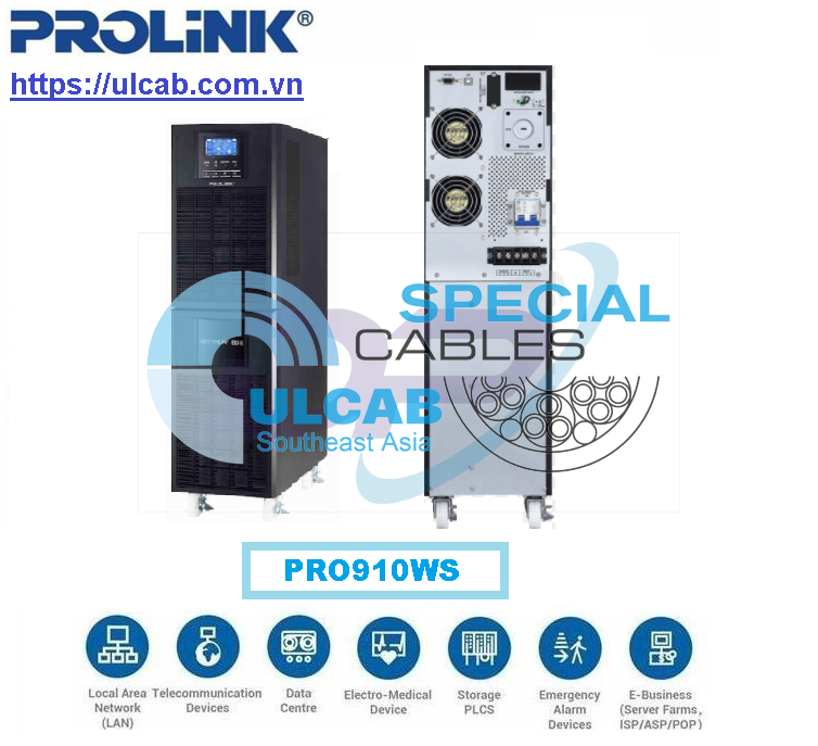 Bộ lưu điện Prolink PRO906WS thuộc dòng sản phẩm UPS Professional Series 1P/1P – Tower của thương hiệu UPS PROLINK, được dùng cho điện áp 1 pha một đầu vào một đầu ra. UPS PROLINK sử dụng công nghệ chuyển đổi kép trực tuyến (on-line double-conversion) chuyển đổi nguồn điện xoay chiều AC thành nguồn điện 1 chiều DC để nạp cho accu nằm trong UPS, rồi lại chuyển đổi nguồn điện một chiều từ acquy thành nguồn điện xoay chiều ổn định hơn cấp cho tải. Thời gian chuyển mạch là 0s.