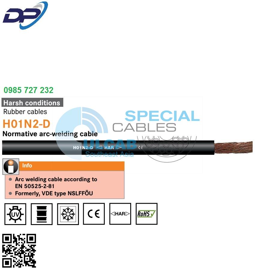 H01N2-D, HAR-certified, power and control cable made of rubber for arc welding, NSLFFÖU-based, 100VAC, 150VDC, HD 22.6, EN 50525-2-81, IEC 60245