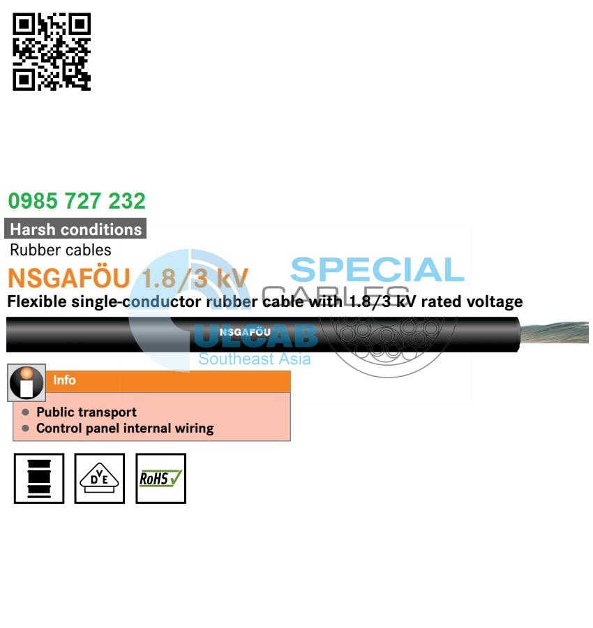 Flexible single-conductor rubber cable with 1.8/3 kV nominal voltage