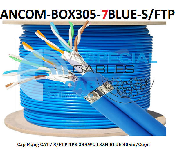 (ANCOM-BOX305-7BLUE-S/FTP) Cáp Mạng ANCOMTECK Cat7 S/FTP 4 Pair 23AWG, LSZH, BLUE, 305m/Cuộn | Chính Hãng – Giá Tốt Nhất
