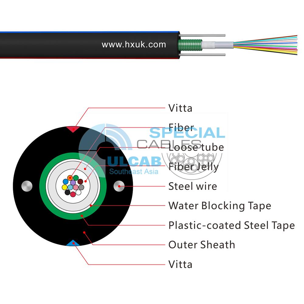 Các sợi 200/250um được đặt trong một ống rời làm bằng nhựa có mô đun cao. Các ống này được đổ đầy hợp chất làm đầy chịu nước. Ống được bọc một lớp PSP theo chiều dọc. Giữa PSP và vật liệu chặn nước ống lỏng được áp dụng để giữ cho cáp nhỏ gọn và kín nước. Hai dây thép song song được đặt ở hai bên của băng thép. Cáp được hoàn thiện bằng vỏ bọc bằng polyetylen (PE).