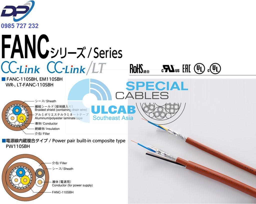 Dòng FANC-110SBH là cáp mạng FA được thiết kế tuân thủ CC-Link Ver.1.10. Sê-ri FANC-110SBH, khi được sử dụng để kết nối mạng với thiết bị tuân thủ CC-Link Ver.1.10, cho phép hình thành một mạng có ít hạn chế hơn trong kết nối cáp so với Sê-ri FANC-SB (tuân thủ CC-Link Ver.1.00). FANC110SBH là tiêu chuẩn của dòng sản phẩm này và loại hỗn hợp tích hợp cặp nguồn, PW110BH, được chứng nhận tuân thủ các yêu cầu UL/cUL AWM.
