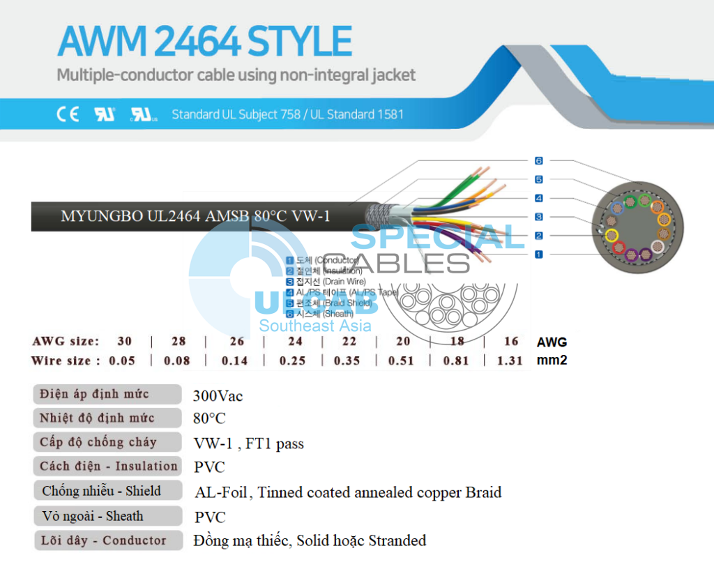 Cáp Tín Hiệu MYUNGBO UL2464 AMSB 80°C 300V VW-1 FT1 | Chính Hãng – Giá Tốt Nhất