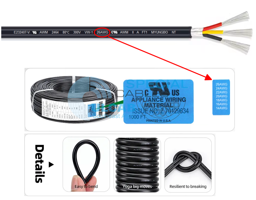 | Cáp tín hiệu 26AWG, 24AWG, 22AWG, 20AWG, 18AWG, 16AWG, 14AWG | |