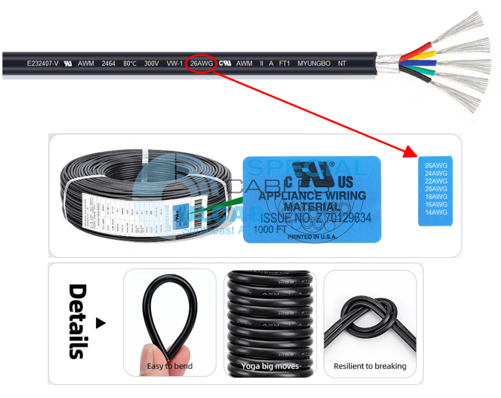 | Cáp tín hiệu 26AWG, 24AWG, 22AWG, 20AWG, 18AWG, 16AWG, 14AWG | |