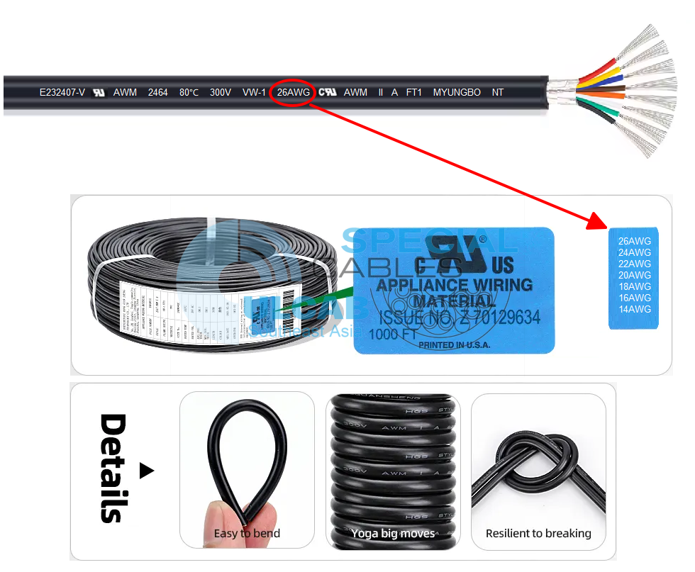 | Cáp tín hiệu 26AWG, 24AWG, 22AWG, 20AWG, 18AWG, 16AWG, 14AWG | |