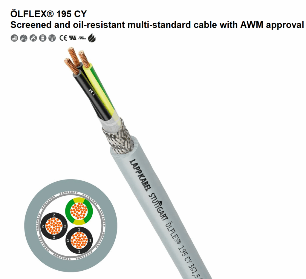 Screened and oil-resistant multi-standard cable with AWM approval