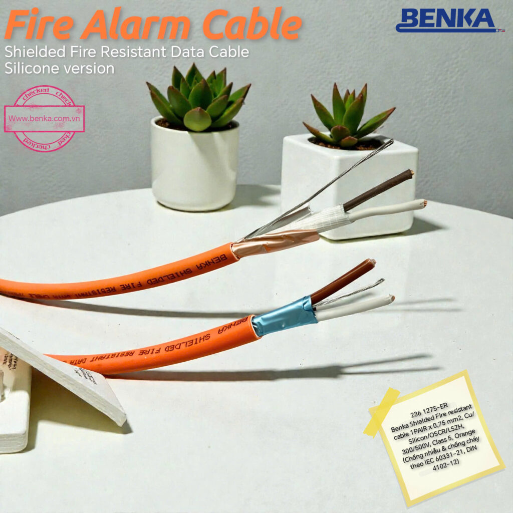 Dây cáp tín hiệu điều khiển báo cháy BENKA Shielded Fire Resistant Cable 236 1275-ER là loại cáp chuyên dụng cho hệ thống báo cháy, có khả năng chống cháy, chống nhiễu và ít khói không halogen, đảm bảo an toàn cao cho các công trình dân dụng và công nghiệp.