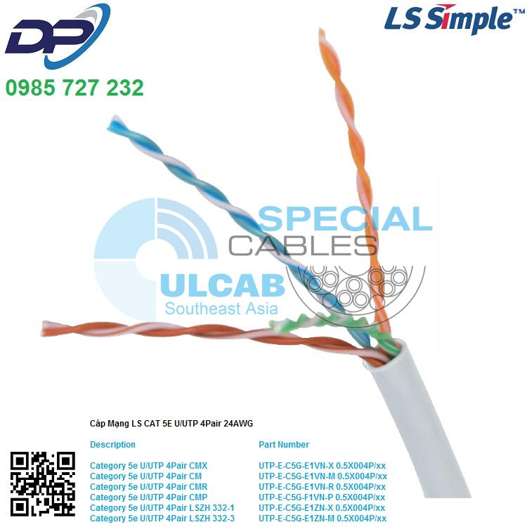 Cáp Mạng LS CAT5E U/UTP 4Pair LSZH 332-1 – White ( UTP-E-C5G-E1ZN-X 0.5X004P/WH )