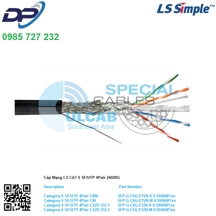 Cáp Mạng LS VINA CAT6 SF/UTP 4Pair LSZH 332-1 – White ( SFP-G-C6G-E1ZN-X 0.5X004P/WH )