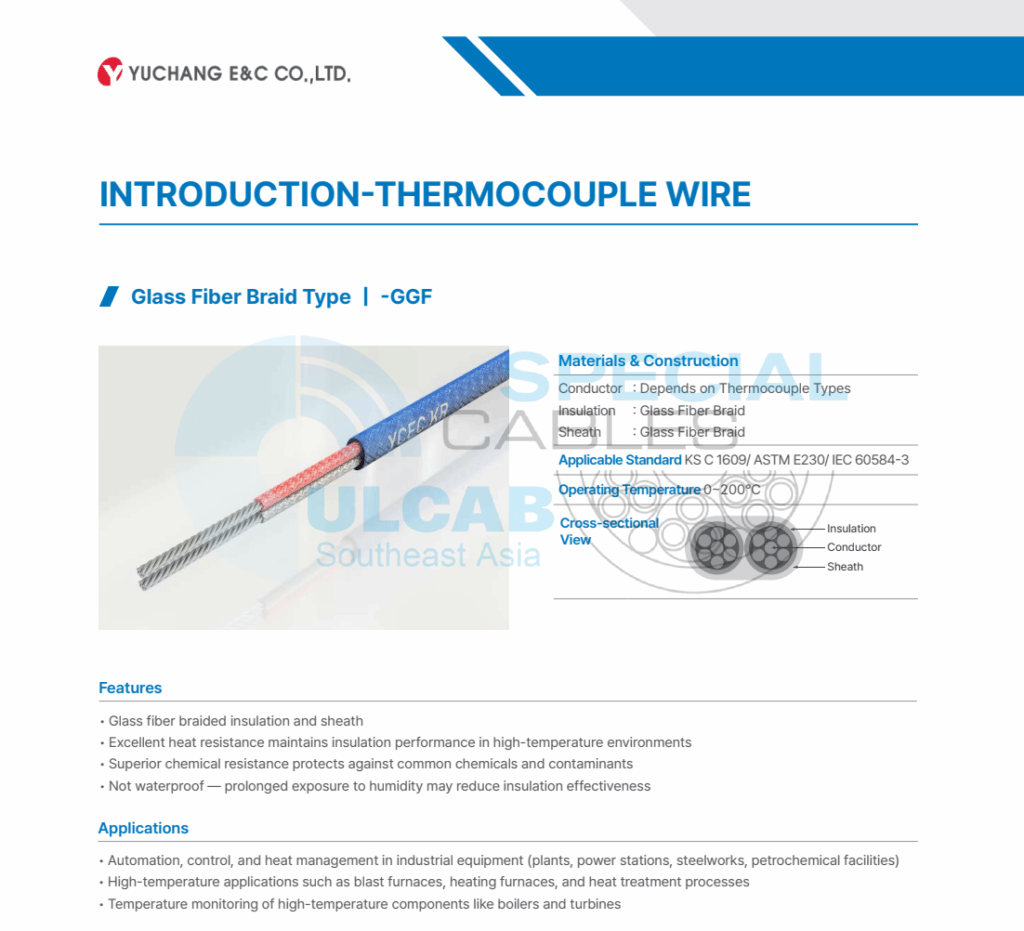 Dây cáp bù nhiệt dùng cho cặp nhiệt điện KX-G-GGF [1PX1.25SQMM] | 0~200℃ | Glass Fiber Braid Type | Yuchang E&C Chính hãng giá tốt