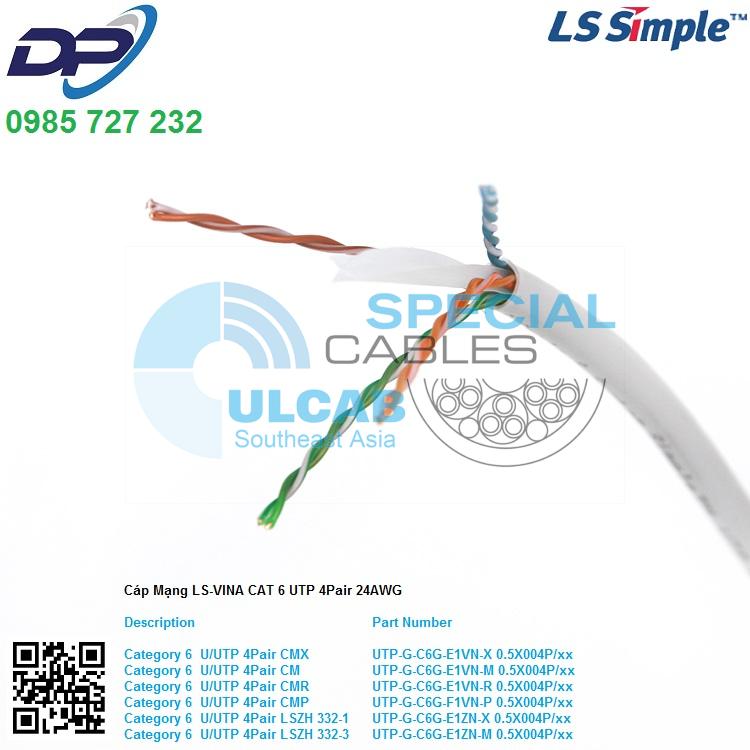 Cáp Mạng LS VINA CAT6 U/UTP 4Pair CMX – White ( UTP-G-C6G-E1VN-X 0.5X004P/WH )