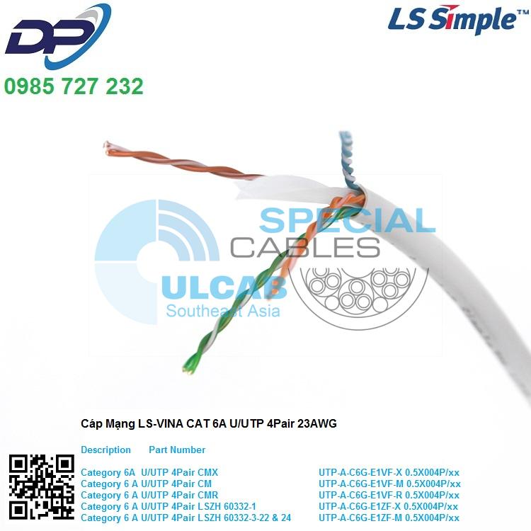 Cáp Mạng LS VINA CAT6A U/UTP 4Pair 23AWG CMR ( UTP-A-C6G-E1VF-R 0.5X004P/WH )