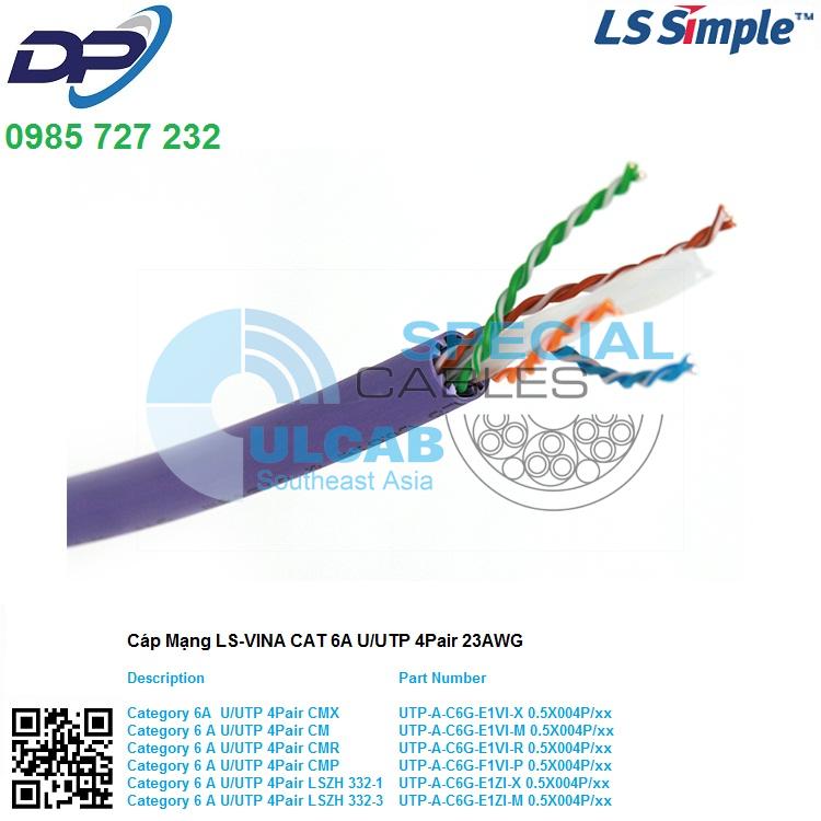 Cáp Mạng LS VINA CAT6A U/UTP 4Pair 23AWG CMX – Violet ( UTP-A-C6G-E1VI-X 0.5X004P/VI )