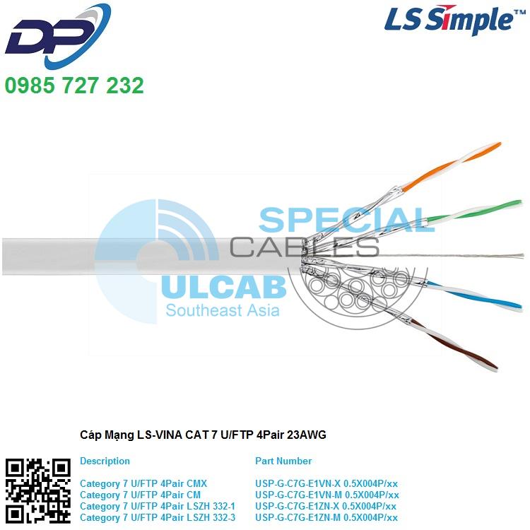 Cáp Mạng LS VINA CAT7 U/FTP 4Pair 23AWG LSZH 332-1 – White ( USP-G-C7G-E1ZN-X 0.5X004P/WH )