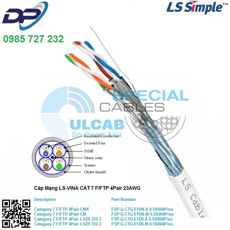 Cáp Mạng LS VINA CAT7 F/FTP 4Pair 23AWG CM – White ( FSP-G-C7G-E1VN-M 0.5X004P/WH )