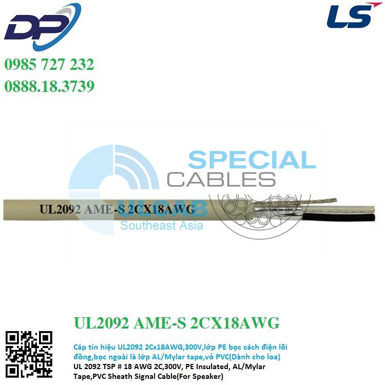 Cáp Điều Khiển LS-VINA ( UL2092 AME-S 2CX18AWG ) 2C x 18AWG, 300V | UL 2092 | Chống Nhiễu