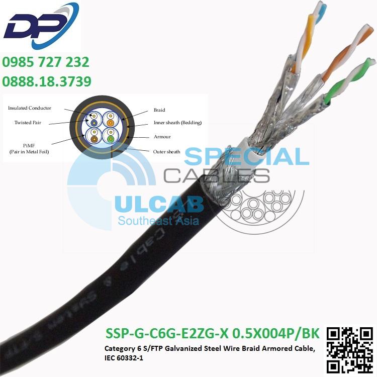 Description Part Number Category 6 S/FTP Galvanized Steel Wire Braid Armored Cable, IEC 60332-1 SSP-G-C6G-E2ZG-X 0.5X004P/BK Category 6 S/FTP Galvanized Steel Wire Braid Armored Cable, IEC 60332-3A SSP-G-C6G-E2ZG-M 0.5X004P/BK