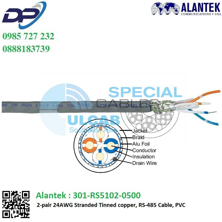 Cáp Điều Khiển Alantek ( 301-RS5102-0500 ) 2-pair 24AWG Stranded Tinned copper, RS-485 Cable, PVC