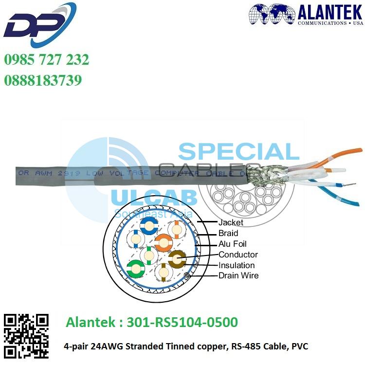 Cáp Điều Khiển Alantek ( 301-RS5104-0500 ) 4-pair 24AWG Stranded Tinned copper, RS-485 Cable, PVC