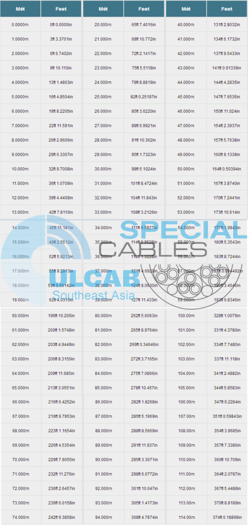 Chuyển đổi Mét sang Feet