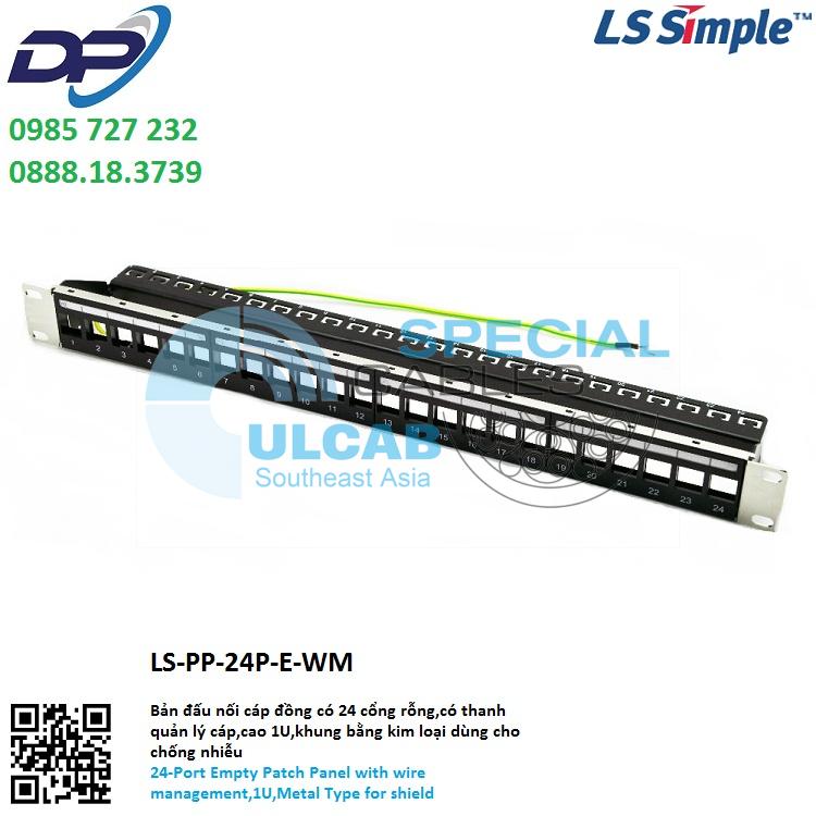 Bản Đấu Nối LS-VINA ( LS-PP-24P-E-WM ) 24 cổng rỗng,có thanh quản lý cáp,cao 1U,khung bằng kim loại dùng cho chống nhiễu