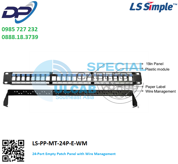 Bản Đấu Nối LS-VINA ( LS-PP-MT-24P-E-WM ) 24-Port Empty Patch Panel with Wire Management