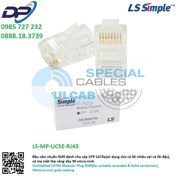 Hạt Mạng LS-VINA ( LS-MP-UC5E-RJ45 ) Đầu cắm chuẩn RJ45 dành cho cáp UTP CAT5e(sử dụng cho cả lõi nhiều sợi và lõi đặc),có mạ một lớp vàng dày 50 micro-inch