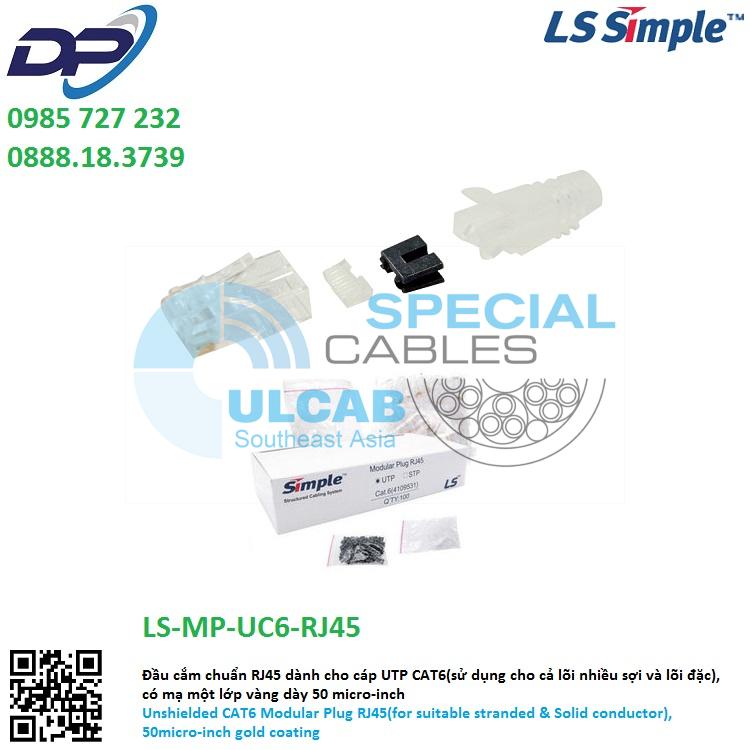 Hạt Mạng LS-VINA ( LS-MP-UC6-RJ45 ) Đầu cắm chuẩn RJ45 dành cho cáp UTP CAT6(sử dụng cho cả lõi nhiều sợi và lõi đặc),có mạ một lớp vàng dày 50 micro-inch
