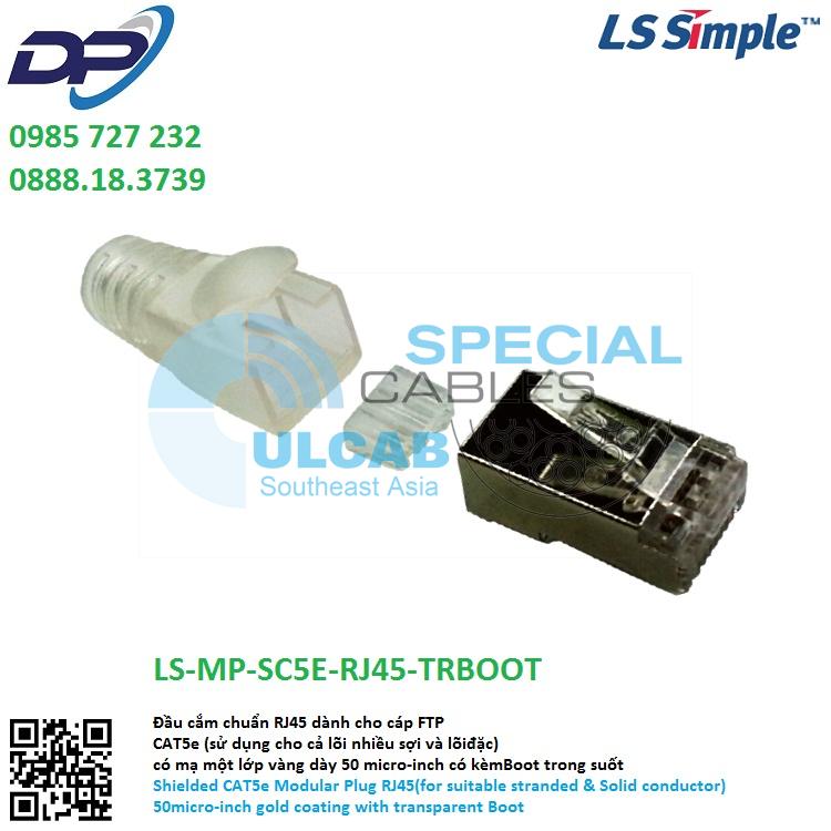 Hạt Mạng LS-VINA ( LS-MP-SC5E-RJ45-TRBOOT ) Đầu cắm chuẩn RJ45 dành cho cáp FTP CAT5e (sử dụng cho cả lõi nhiều sợi và lõi đặc),có mạ một lớp vàng dày 50 micro-inch có kèm Boot trong suốt