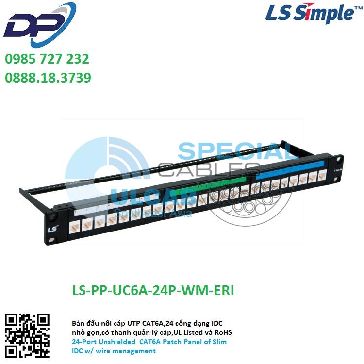 Thanh Đấu Nối LS-VINA ( LS-PP-UC6A-24P-WM-ERI ) CAT6A, 24 cổng dạng IDC nhỏ gọn,có thanh quản lý cáp,UL Listed và RoHS