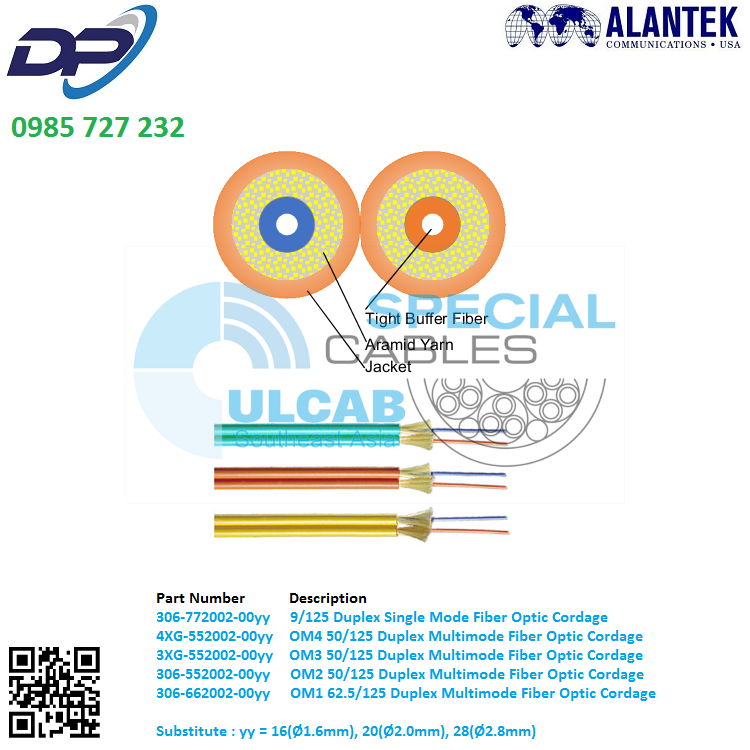 | 306-552002-0016 | OM2 50/125 Duplex Multimode Fiber Optic Cordage |