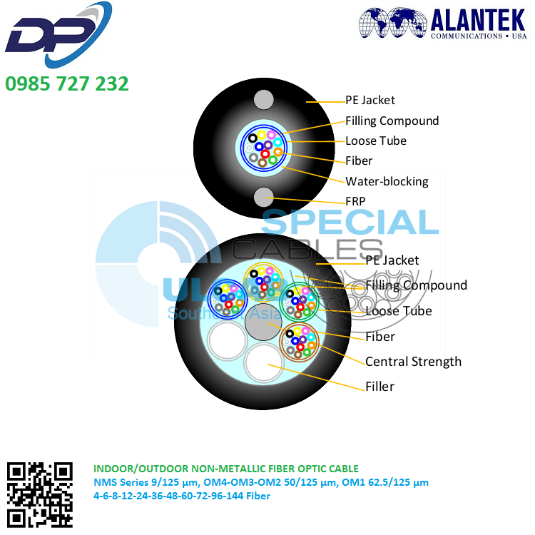 | xx = 04,06,08,12.24,36,48,96 ( Fiber ) | 50/125 µm OM4 Indoor/Outdoor Non-Metallic Fiber Optic Cable | |