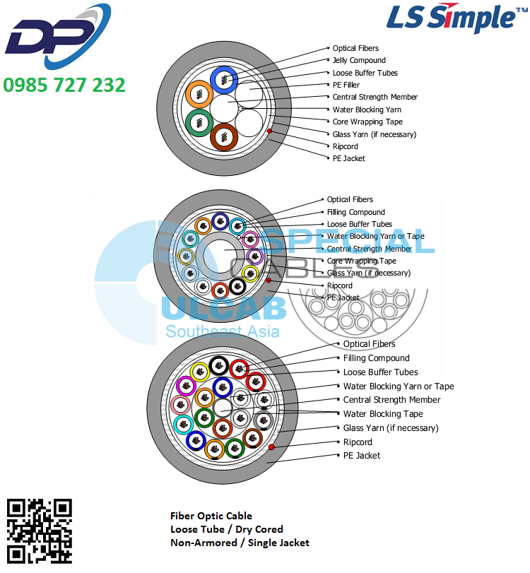 Cáp Quang LS-VINA ( LT-DJBGEXX/BRN MX4XXX(06T2.00) ) Outdoor/Indoor, Loose Tube, Multimode, OM3, 50/125um, 4 Cores, Single PE Jacket, Non Armor,Black