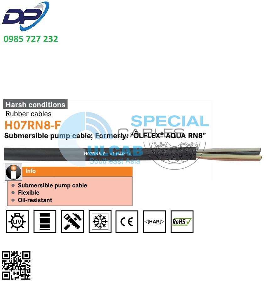 H07RN8-F, HAR, power and control cable, rubber, 450/750V, permanent submersion up to a depth of 10 m, submersible pumps, class 5, oil-resistant, flame-retardant