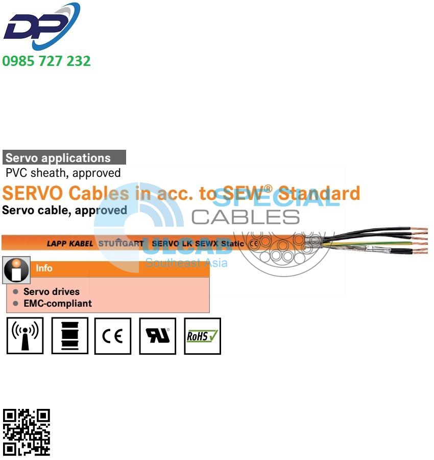 Cables in accordance with SEW® standard – shielded servo cable for fixed installation or occasional flexing with UL AWM certification.