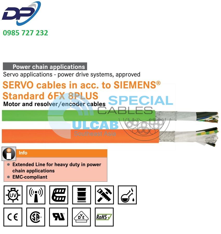 Cables according to SIEMENS® standard 6FX 8PLUS – shielded motor connection and rotary encoder cables for dynamic applications with UL/CSA AWM and VDE.