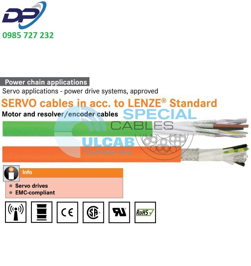 Cables according to LENZE® standard – motor connection and rotary encoder cables for stationary or dynamic applications with UL/CSA AWM.