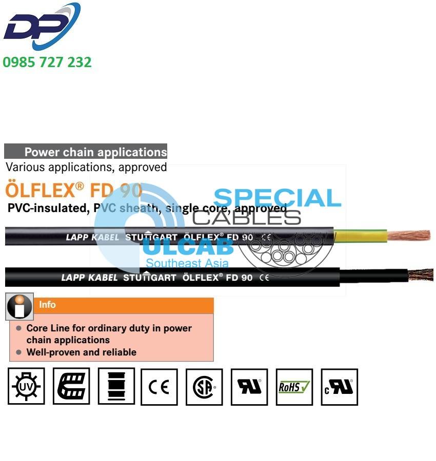ÖLFLEX® FD 90 – oil-resistant power and control cable for versatile use in power chains with UL/CSA AWM certification.