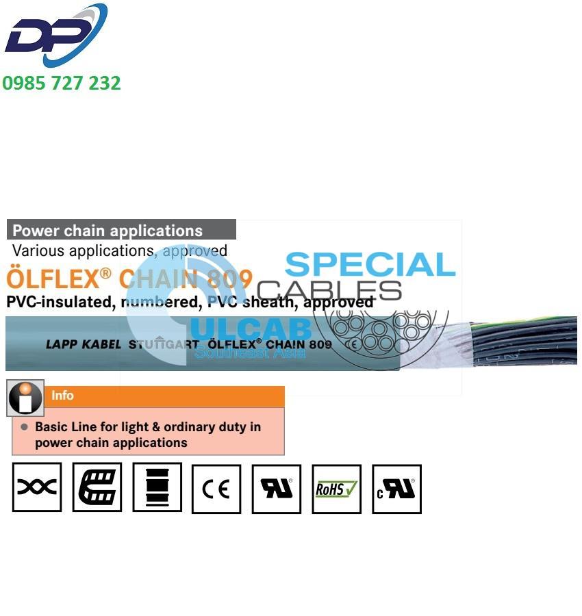 ÖLFLEX® CHAIN 809 – power and control cable for versatile use in power chains with UL/cUL AWM certification.