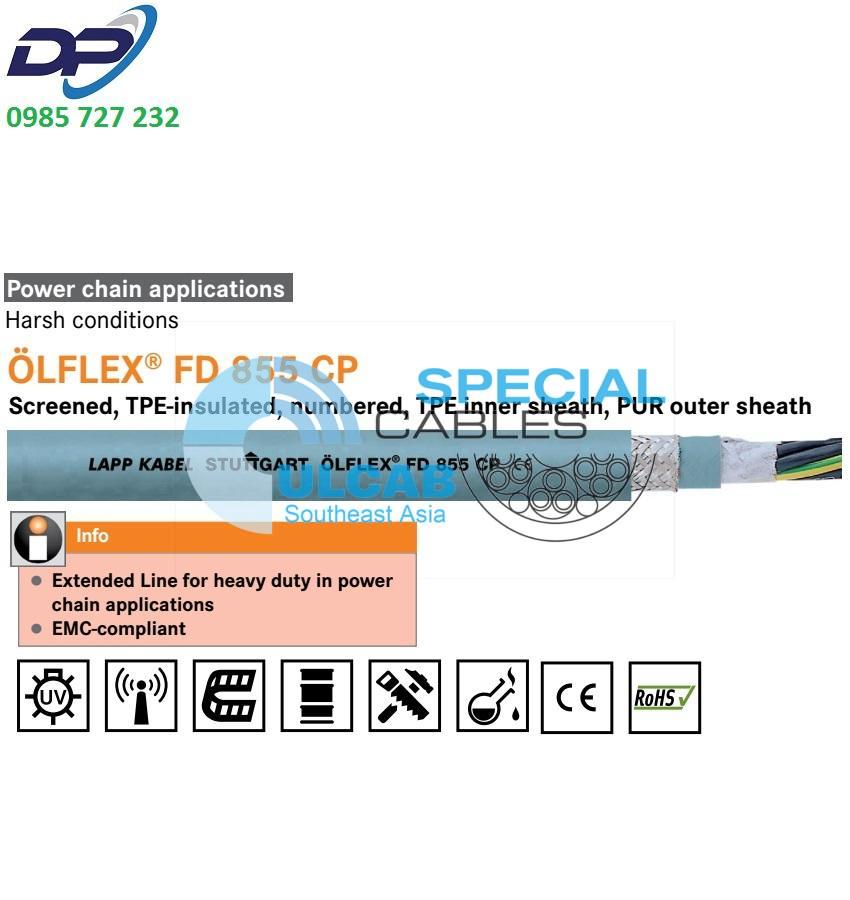 ÖLFLEX® FD 855 CP – halogen-free and shielded power and control cable for use in power chains in harsh environmental conditions