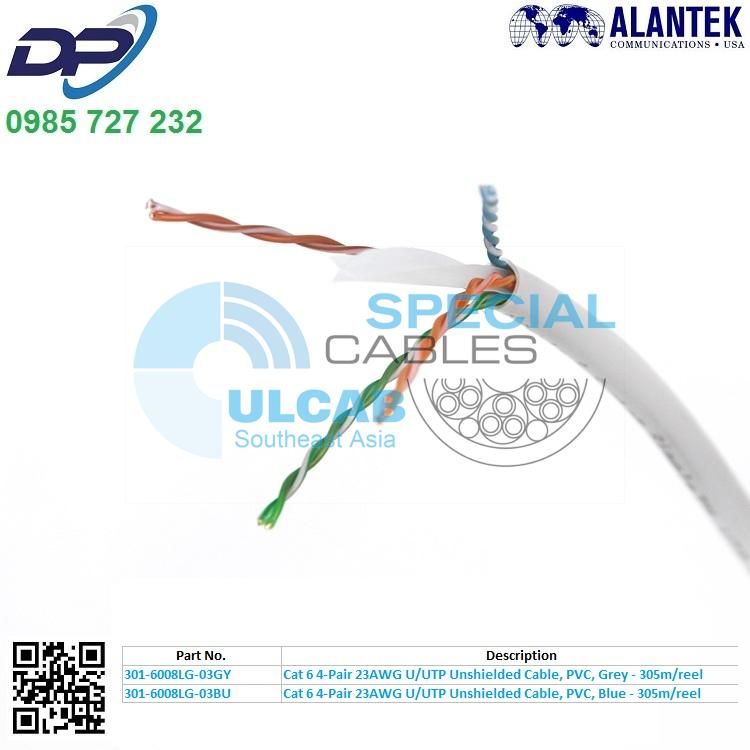 Cáp Mạng Alantek ( 301-6008LG-03GY ) Cat 6 4-Pair 23AWG U/UTP Unshielded Cable, PVC, Grey – 305m/reel | Chính Hãng – Giá Tốt Nhất