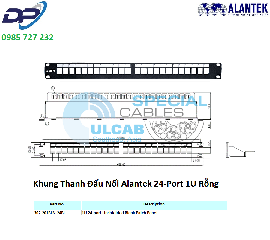 Khung Thanh Đấu Nối Alantek ( 302-201BLN-24BL ) Patch Panel 24-port 1U Unshielded Blank | Chính Hãng – Giá tốt Nhất