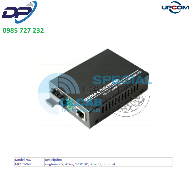 Bộ chuyển đổi UPCOM ( MC101-S-40 ) Converter Single-mode, 40Km, 5VDC, SC, FC or ST, optional