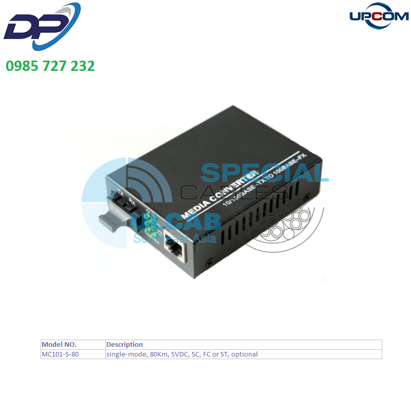 Bộ chuyển đổi UPCOM ( MC101-S-80 ) Converter Single-mode, 80Km, 5VDC, SC, FC or ST, optional