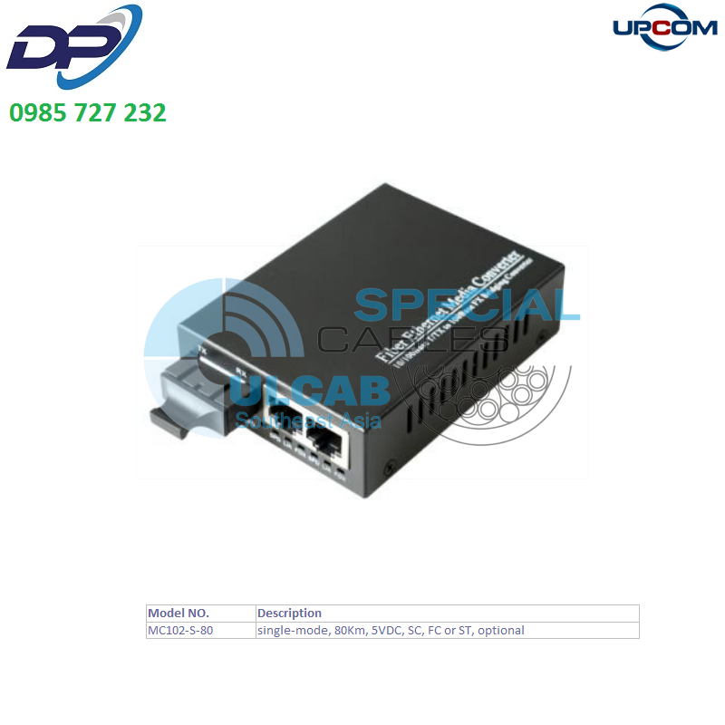 Bộ chuyển đổi UPCOM ( MC102-S-80 ) 2-port 10/100M Ethernet, Single-mode, 80Km, 5VDC, SC, FC or ST, optional | Chính Hãng – Giá Tốt Nhất – Giá Rẻ Nhất